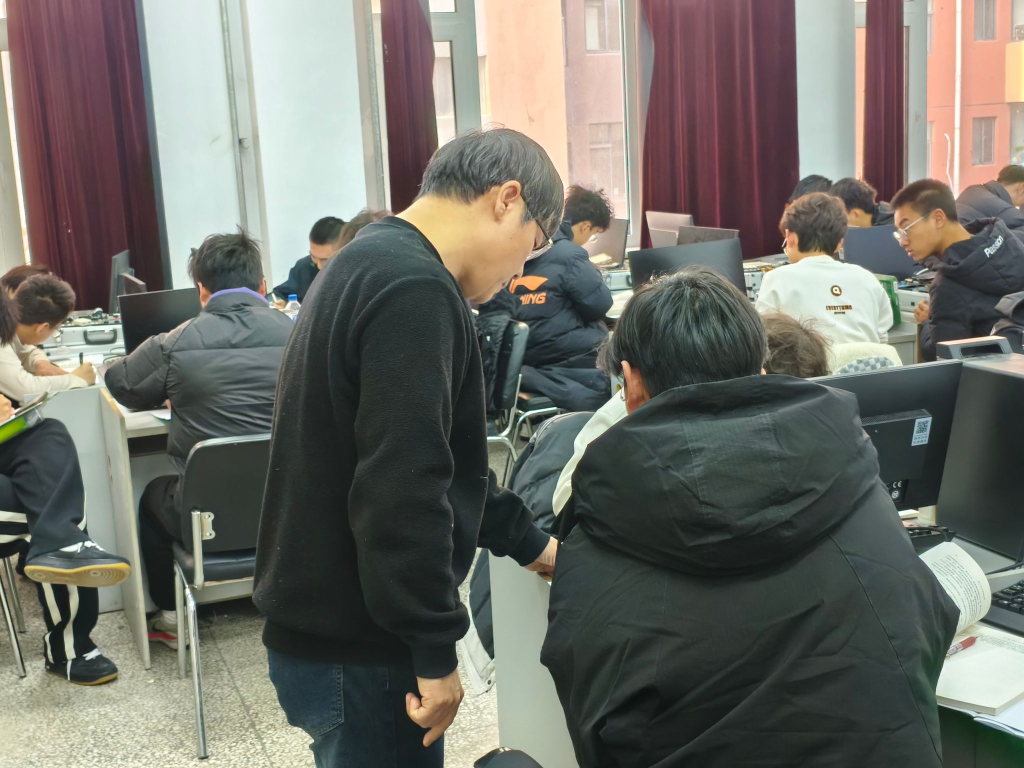 巡课组先后走进实训安全教育、数控车加工、数控铣加工、铸造、创意组合模型、数控车加工编程、电工电子实习等多个实训区域,通过“实地查看、随堂听课、师生交流”等立体化巡课模式,细致了解实训设备运行状态,精准把控教师授课节奏,耐心倾听学生学习反馈,全方位掌握教学动态。